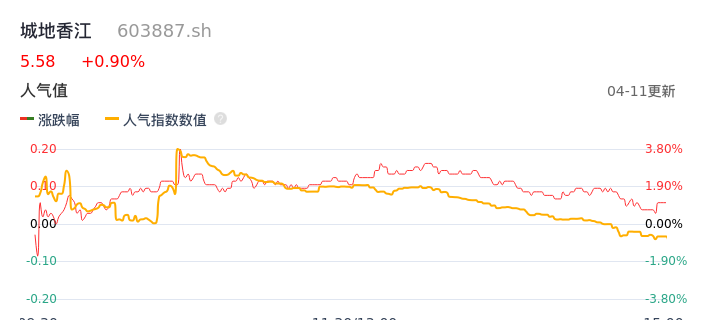 04月11日,城地香江收报5.58,股价涨幅0.90%,成交金额6600.43万元,换手率2.61%。