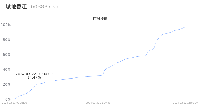 603887城地香江2024年03月22日成交38.60万手,成交金额2.59亿元,相较昨日放量15.54万手,换手率8.56%,成交清淡。