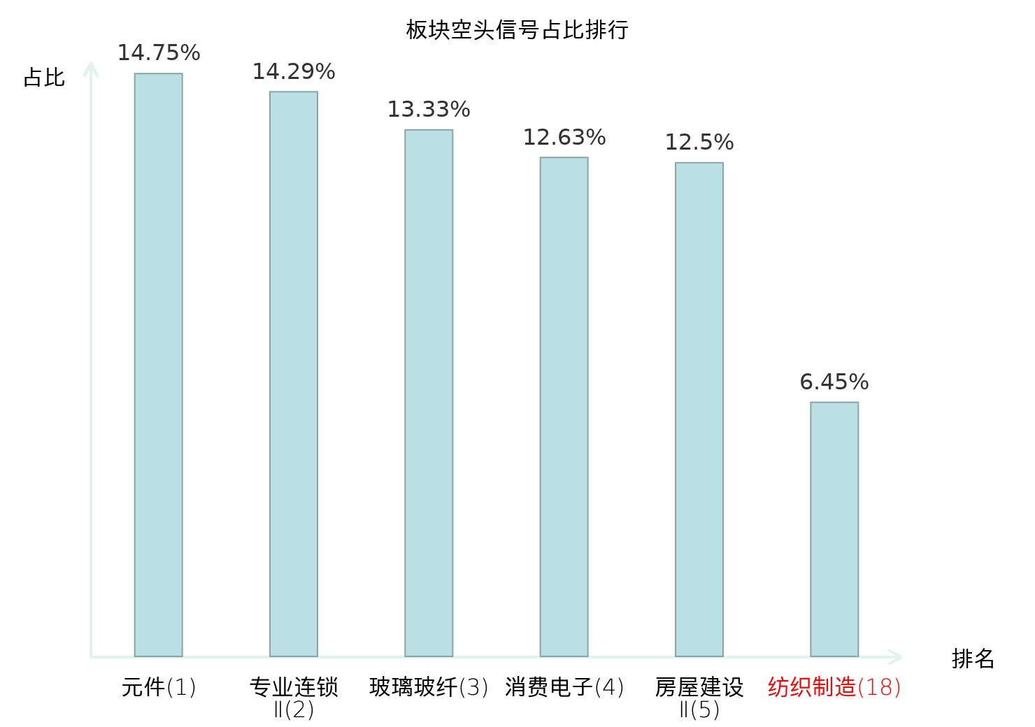 全市场所有行业板块中主力空头信号占比排名中,元件板块位居第一。电机Ⅱ板块名次提升最快,较昨日上升111位。