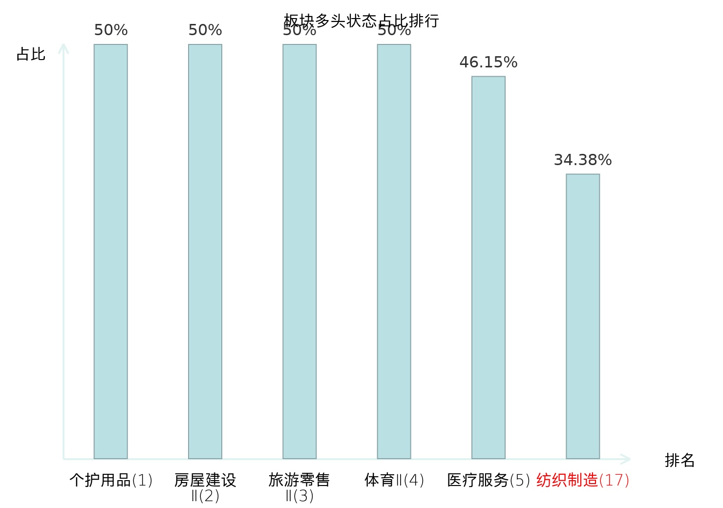 全市场所有行业板块中主力多头状态占比排名中,个护用品板块位居第一。影视院线板块名次提升最快,较昨日上升56位。