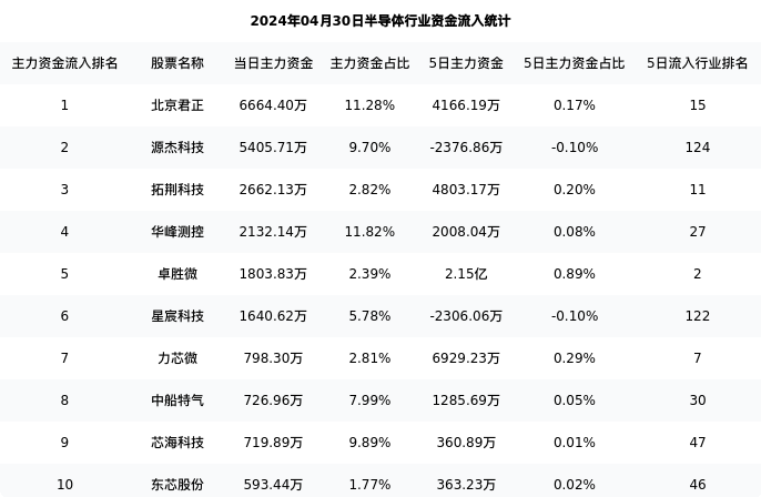 从主力资金流向来看,半导体行业今日主力资金流入100.39亿元,在所有申万二级行业中排名:100/131。