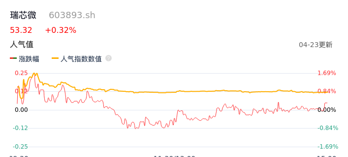 04月23日,瑞芯微收报53.32,股价涨幅0.32%,成交金额1.62亿元,换手率0.73%。