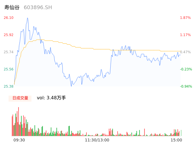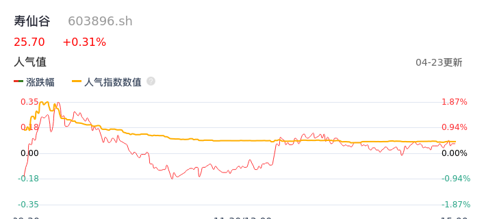 04月23日,寿仙谷收报25.70,股价涨幅0.31%,成交金额8949.82万元,换手率1.72%。