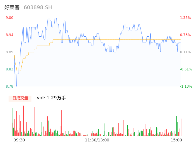 04月25日,好莱客收报8.92,股价涨幅0.45%,成交金额1152.51万元,换手率0.41%。