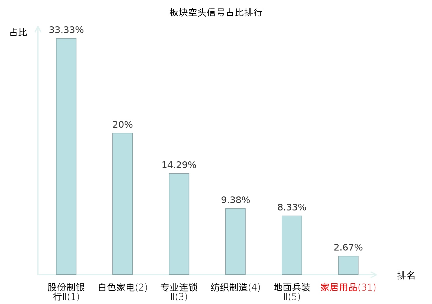 全市场所有行业板块中主力空头信号占比排名中,股份制银行Ⅱ板块位居第一。塑料板块名次提升最快,较昨日上升111位。