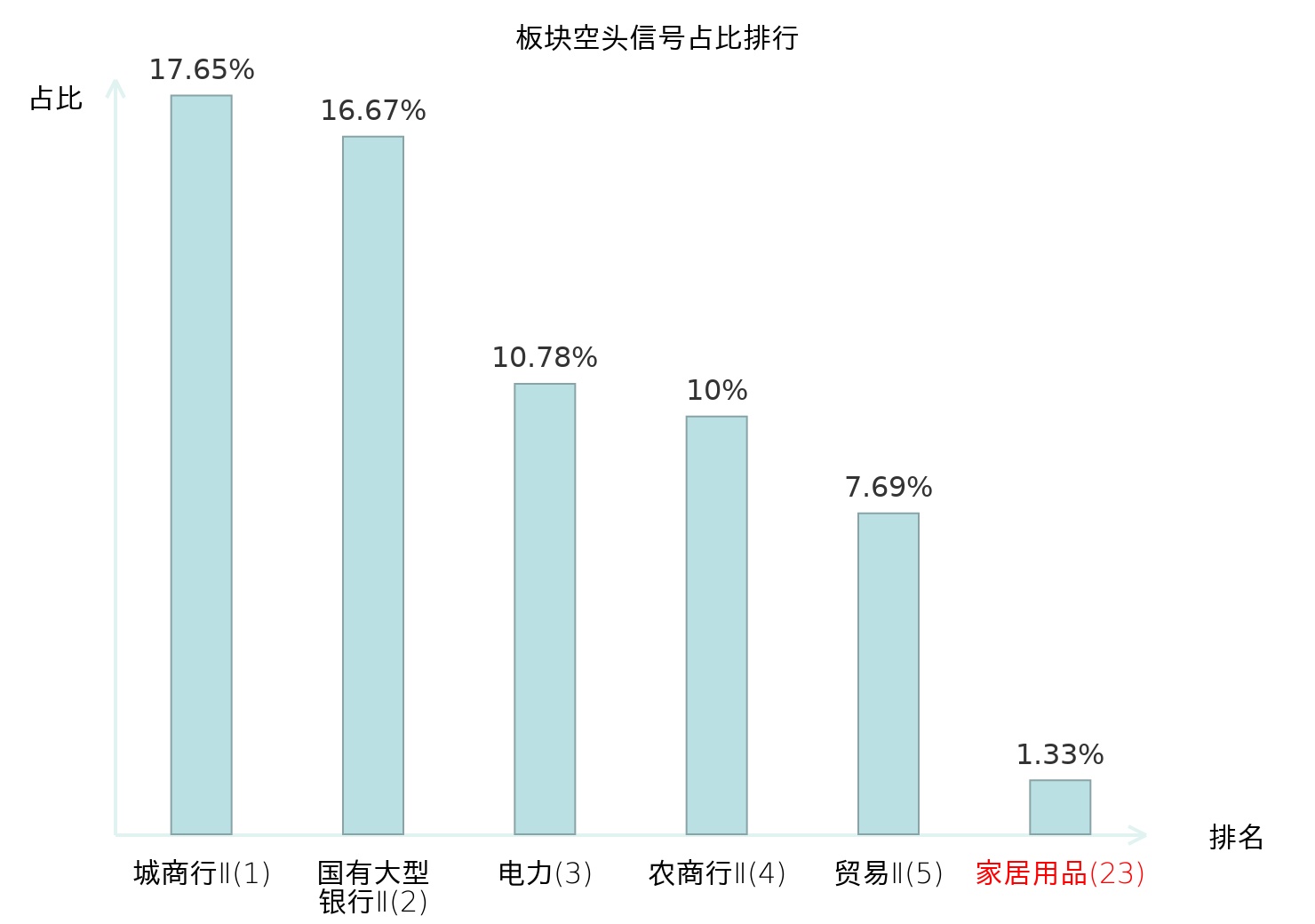 全市场所有行业板块中主力空头信号占比排名中,城商行Ⅱ板块位居第一。化学原料板块名次提升最快,较昨日上升122位。