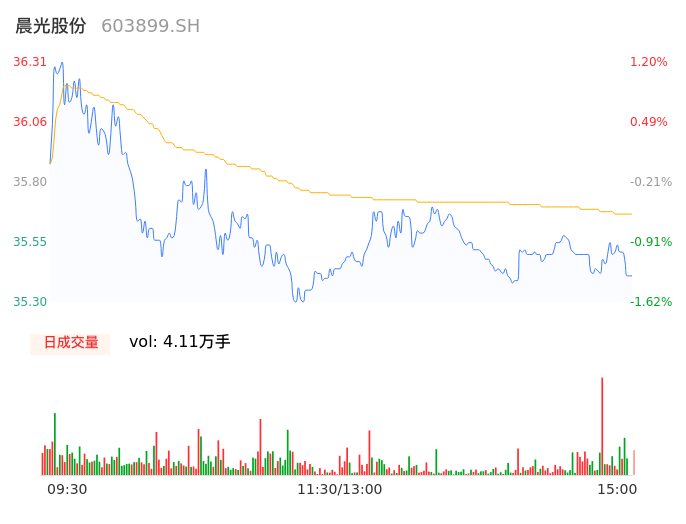04月12日,晨光股份收报35.44,股价涨幅-1.23%,成交金额1.47亿元,换手率0.44%。