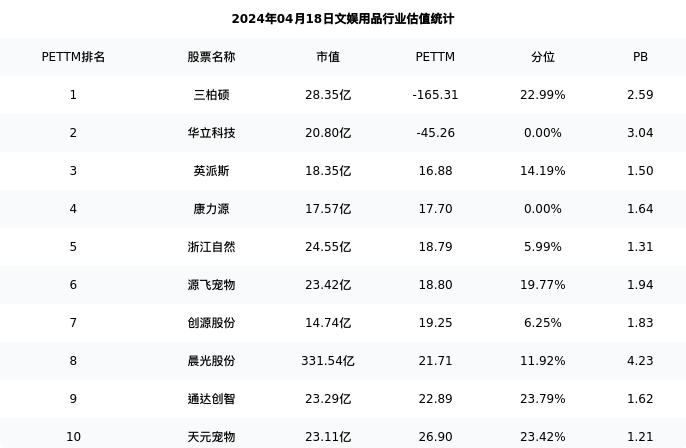 从估值角度看:晨光股份最新市盈率PETTM为21.71,在行业内排名6/22,处于11.92分位。