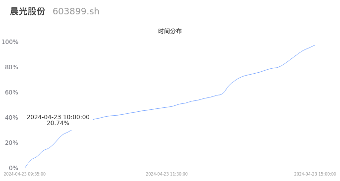 603899晨光股份2024年04月23日成交3.19万手,成交金额1.11亿元,相较昨日缩量7910手,换手率0.35%,成交清淡。