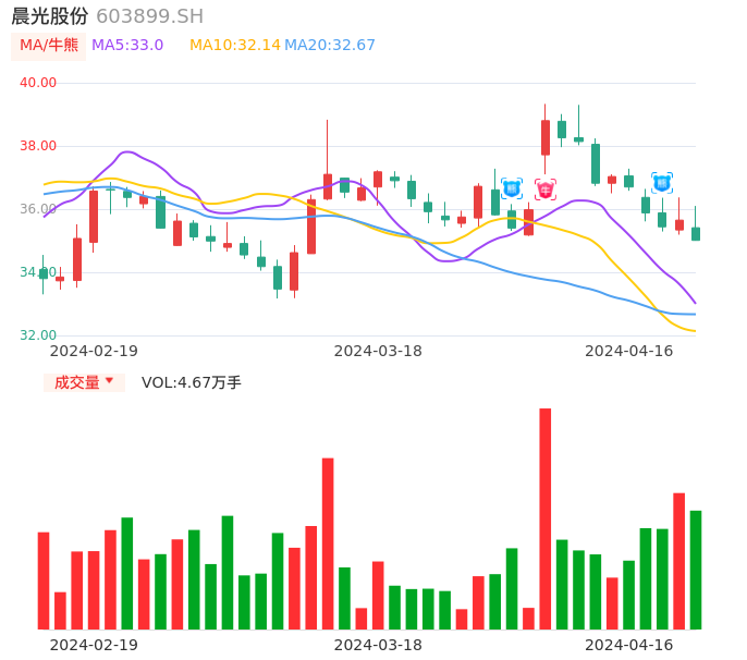 值得注意的是:2024年04月海通证券的郭庆龙/王文杰分析师,首次发布关于晨光股份的研究报告,标题为:晨光股份(603899):九木首次实现盈利 海外收入占比提升。