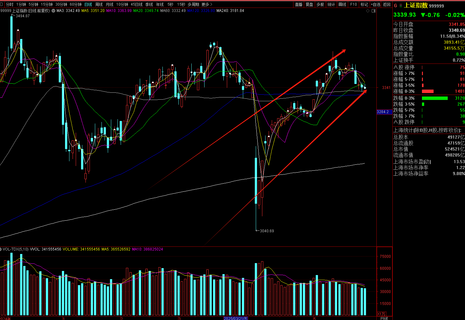 三大指数呈现量能萎缩震荡态势,其中上证指数下跌0.02%,深证成指下挫0.26%,创业板指跌幅为0.31%。整体个股呈现跌多涨少格局,下跌家数达3480 家,非 ST 个股涨停数量为57家,非ST个股跌停数量3家,市场情绪迎来小幅分化。沪深两市合计成交金额1.01万亿元,较前一交易日增加 110亿元,市场成交量再度回落至万亿以下