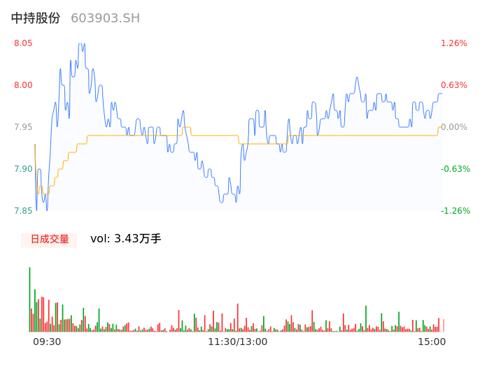 04月19日,中持股份收报7.99,股价涨幅0.50%,成交金额2727.02万元,换手率1.70%。