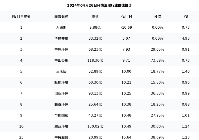 中持股份最新报告期数据为三季度,下表汇总了环境治理行业内市值靠前的公司三季度主要经营数据