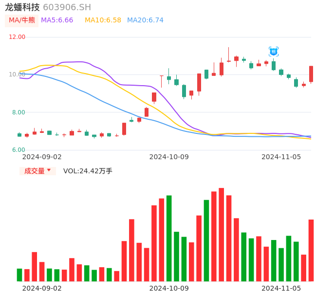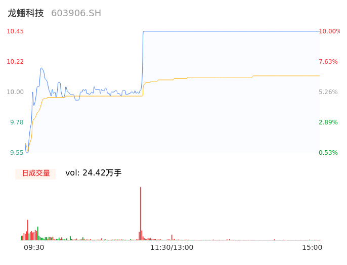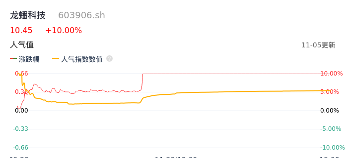 11月05日,龙蟠科技收报10.45,股价涨幅10.00%,成交金额2.47亿,换手率4.32%。