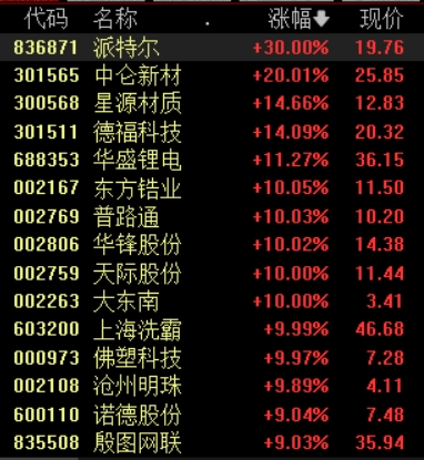 6月26日,固态电池板块延续强势,截至发稿,中伦新材、派特尔、普路通等10股涨停,星源材质、福德科技、华盛锂电等涨幅居前。