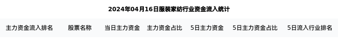 从主力资金流向来看,服装家纺行业今日主力资金流入9.10亿元,在所有申万二级行业中排名:108/131。