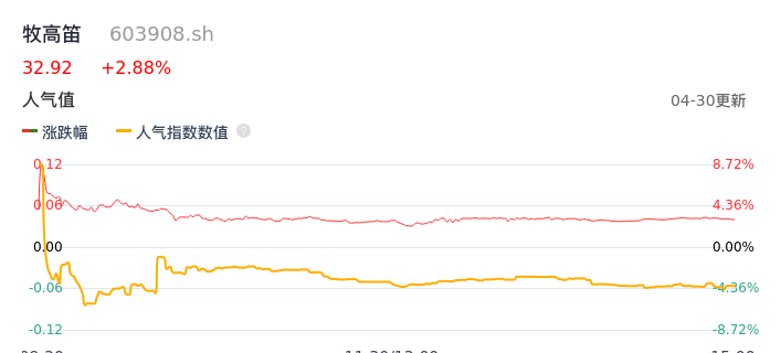 04月30日,牧高笛收报32.92,股价涨幅2.88%,成交金额7981.92万元,换手率3.57%。