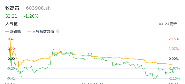 04月24日,牧高笛收报32.21,股价涨幅-1.20%,成交金额5329.07万元,换手率2.47%。
