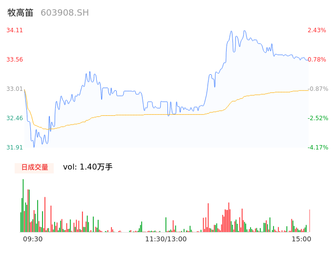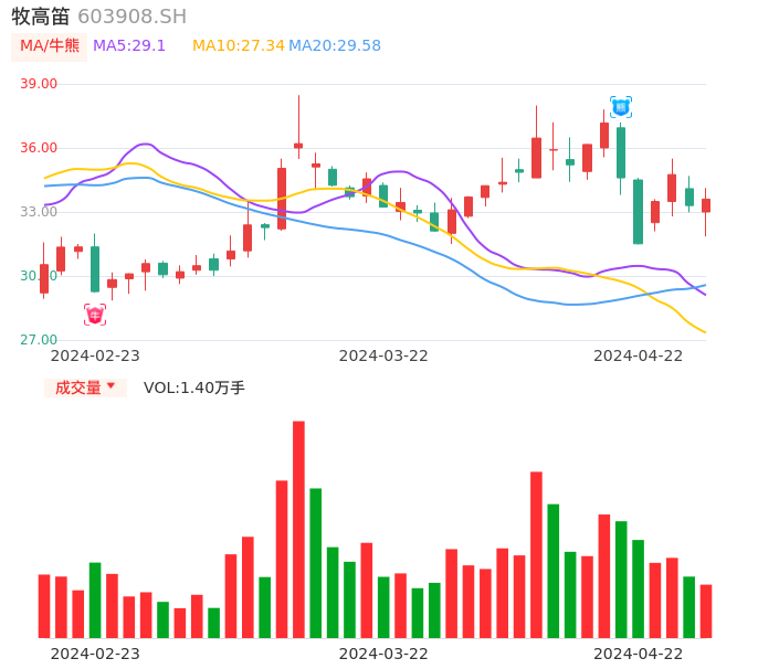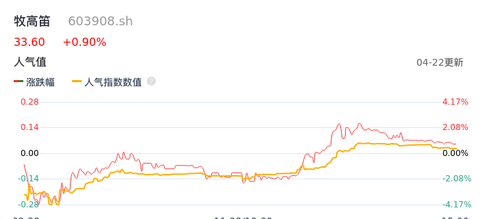04月22日,牧高笛收报33.60,股价涨幅0.90%,成交金额4602.92万元,换手率2.09%。