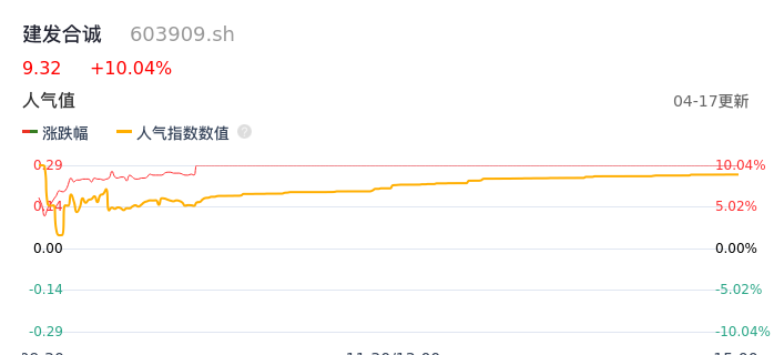 04月17日,建发合诚收报9.32,股价涨幅10.04%,成交金额1974.35万元,换手率0.83%。
