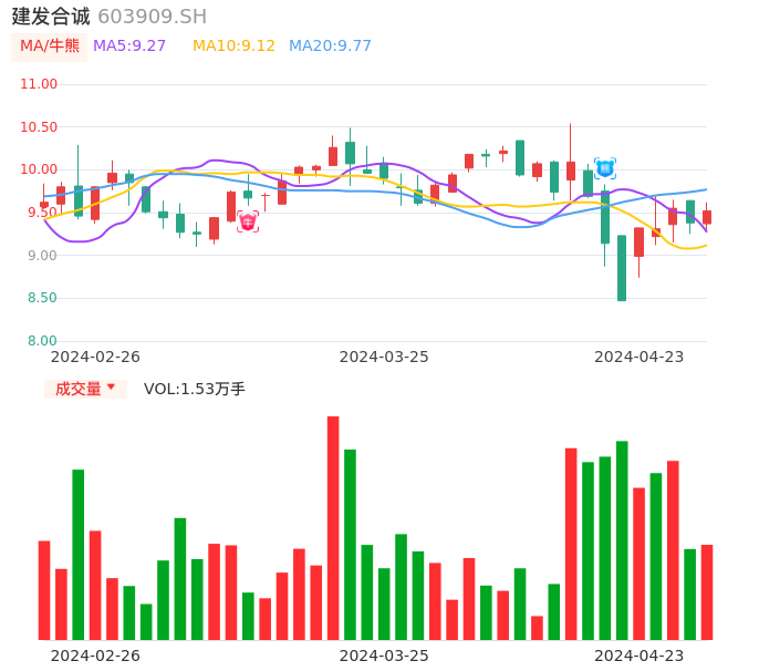 04月23日,建发合诚收报9.52,股价涨幅1.49%,成交金额1458.77万元,换手率0.59%。