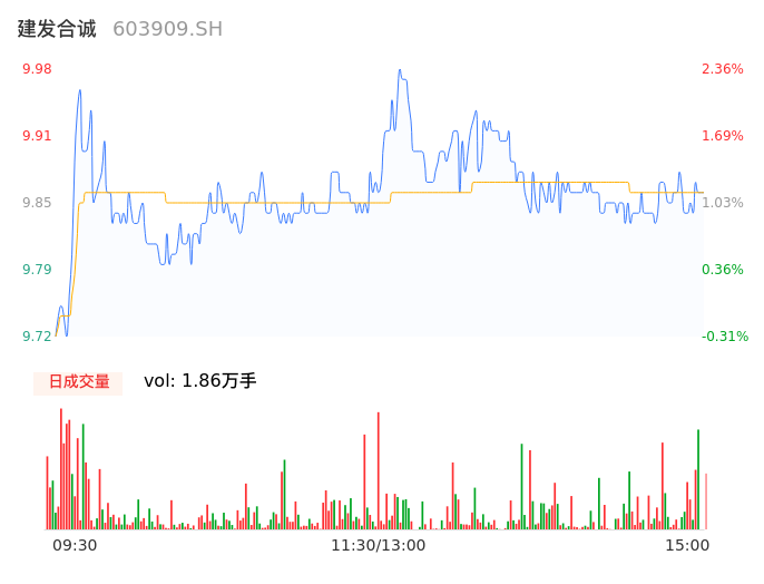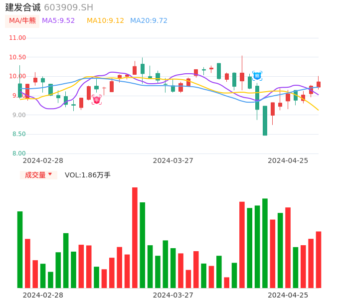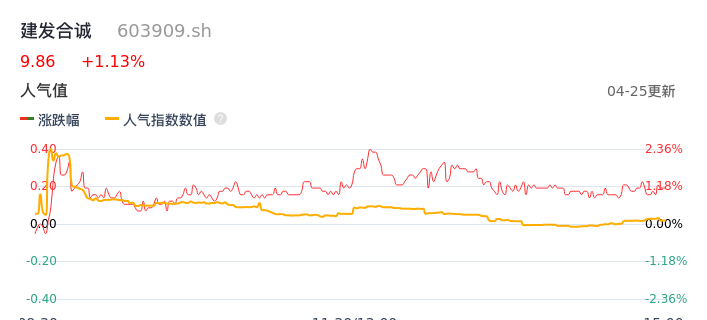 04月25日,建发合诚收报9.86,股价涨幅1.13%,成交金额1838.86万元,换手率0.72%。