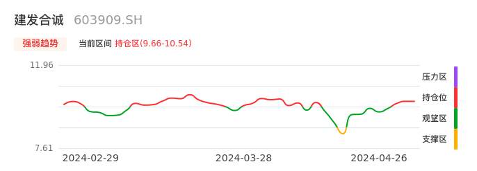 我们来看一下该股的九方特色指标强弱趋势的情况:建发合诚近日从观望区上穿到持仓区。股价短期站稳多头区域,上升动能仍较为充足,可积极关注。后续重点关注上方压力位:10.54元是否能突破上攻。
