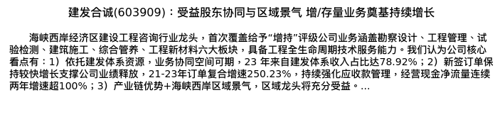 值得注意的是:2024年04月天风证券的鲍荣富/王涛/王雯分析师,首次发布关于建发合诚的研究报告,标题为:建发合诚(603909):受益股东协同与区域景气 增/存量业务奠基持续增长。