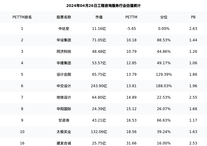 建发合诚最新报告期数据为一季度,下表汇总了工程咨询服务行业内市值靠前的公司一季度主要经营数据