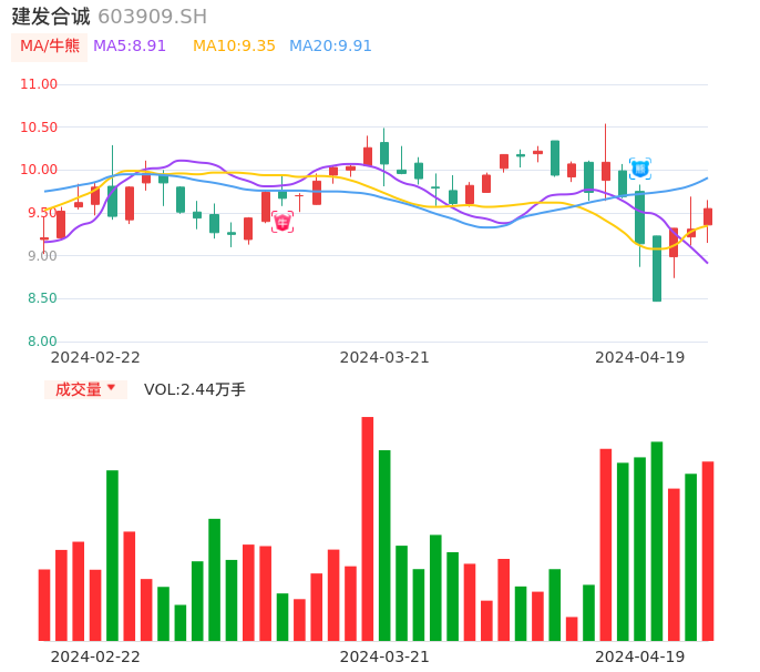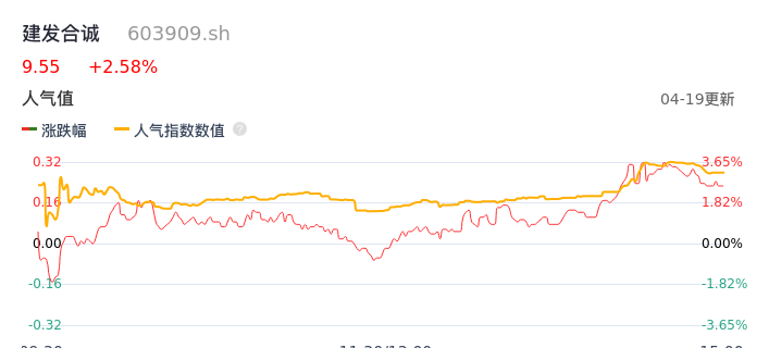 04月19日,建发合诚收报9.55,股价涨幅2.58%,成交金额2318.94万元,换手率0.94%。