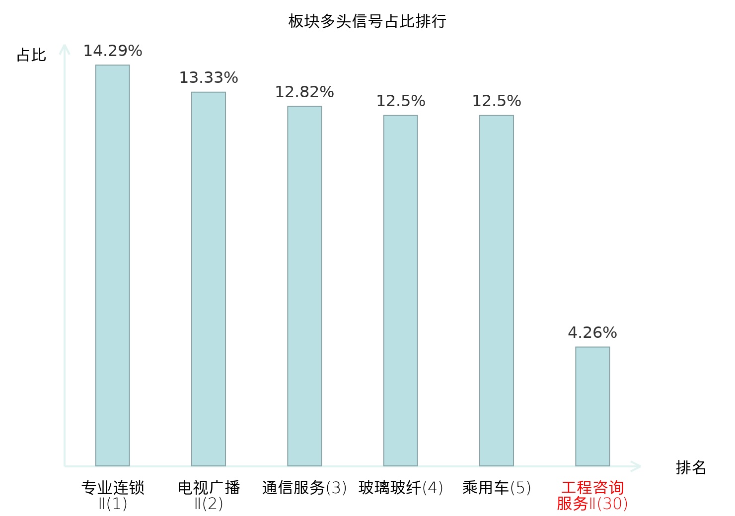 全市场所有行业板块中主力多头信号占比排名中,专业连锁Ⅱ板块位居第一。专业连锁Ⅱ板块名次提升最快,较昨日上升124位。