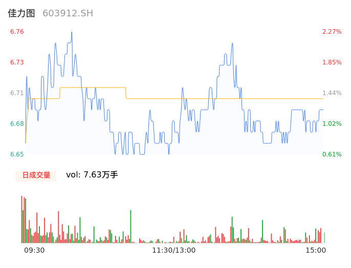 04月23日,佳力图收报6.68,股价涨幅1.06%,成交金额5107.16万元,换手率1.41%。