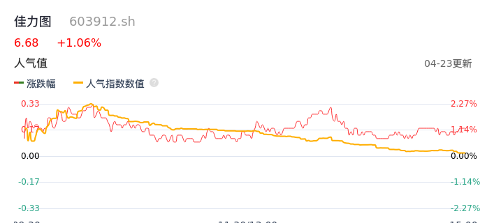04月23日,佳力图收报6.68,股价涨幅1.06%,成交金额5107.16万元,换手率1.41%。