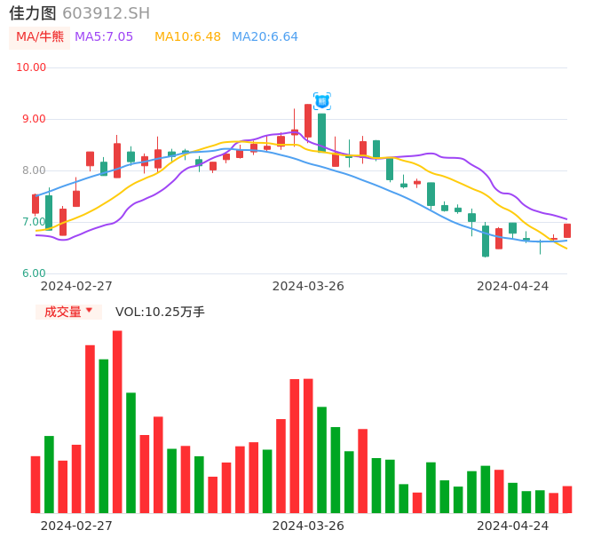 04月24日,佳力图收报6.96,股价涨幅4.19%,成交金额7053.48万元,换手率1.89%。