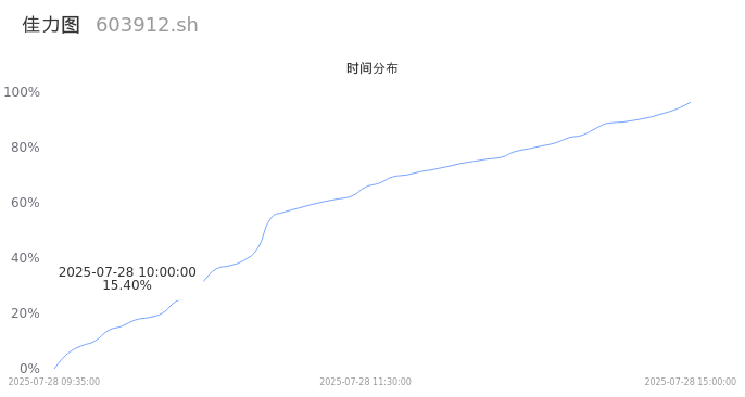 根据成交分布分析,该股票当天放量成交,成交清淡。时间上看,早盘前半小时成交量占据当天总成交量的15.4%;价格上看,成交呈现中间峰。成交分布分析主要研究股票成交的分布特性,不具有预测功能,请知悉。