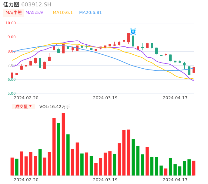 04月17日,佳力图收报6.87,股价涨幅8.53%,成交金额1.11亿元,换手率3.03%。