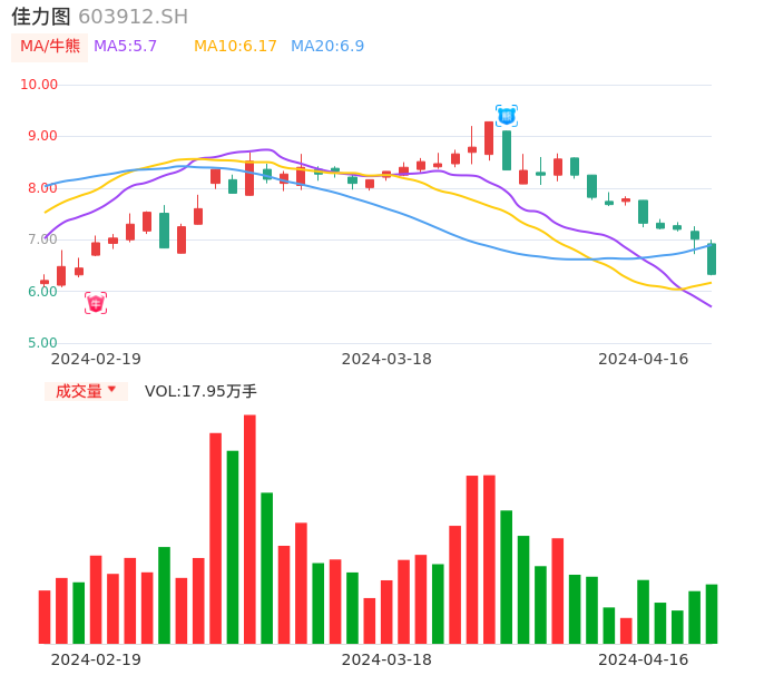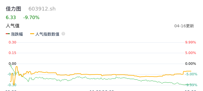 04月16日,佳力图收报6.33,股价涨幅-9.70%,成交金额1.17亿元,换手率3.31%。