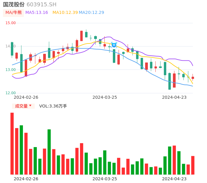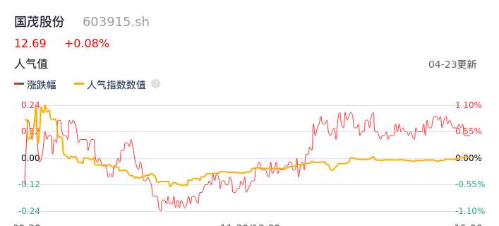 04月23日,国茂股份收报12.69,股价涨幅0.08%,成交金额4267.54万元,换手率0.51%。