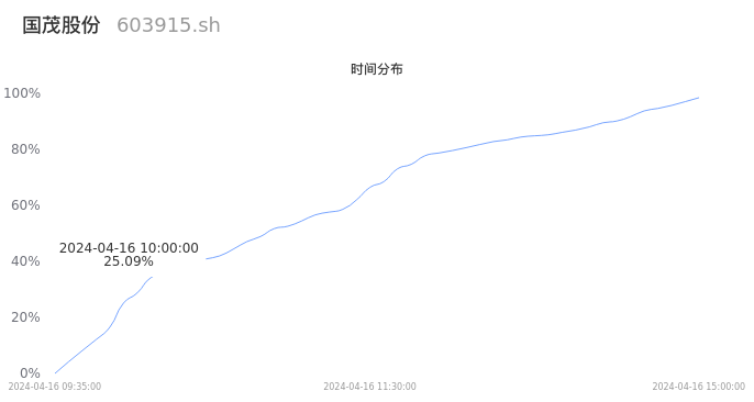 603915国茂股份2024年04月16日成交4.57万手,成交金额5682.25万元,相较昨日放量1.26万手,换手率0.70%,成交清淡。