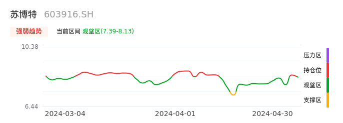 04月30日,苏博特收报8.10,股价涨幅-1.46%,成交金额3982.90万元,换手率1.16%。