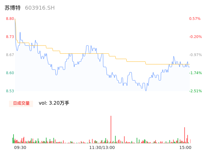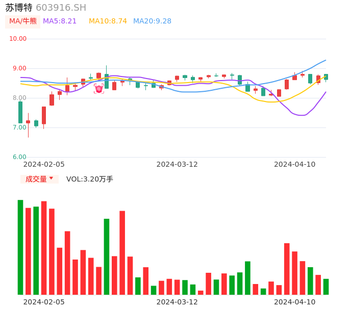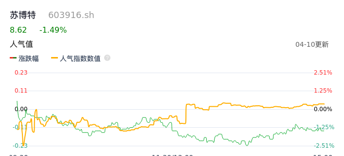 04月10日,苏博特收报8.62,股价涨幅-1.49%,成交金额2759.78万元,换手率0.76%。