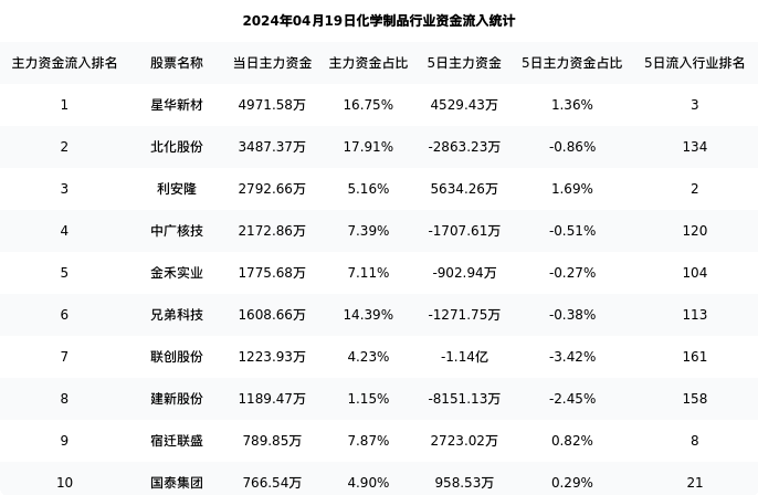 从主力资金流向来看,化学制品行业今日主力资金流入39.91亿元,在所有申万二级行业中排名:70/131。