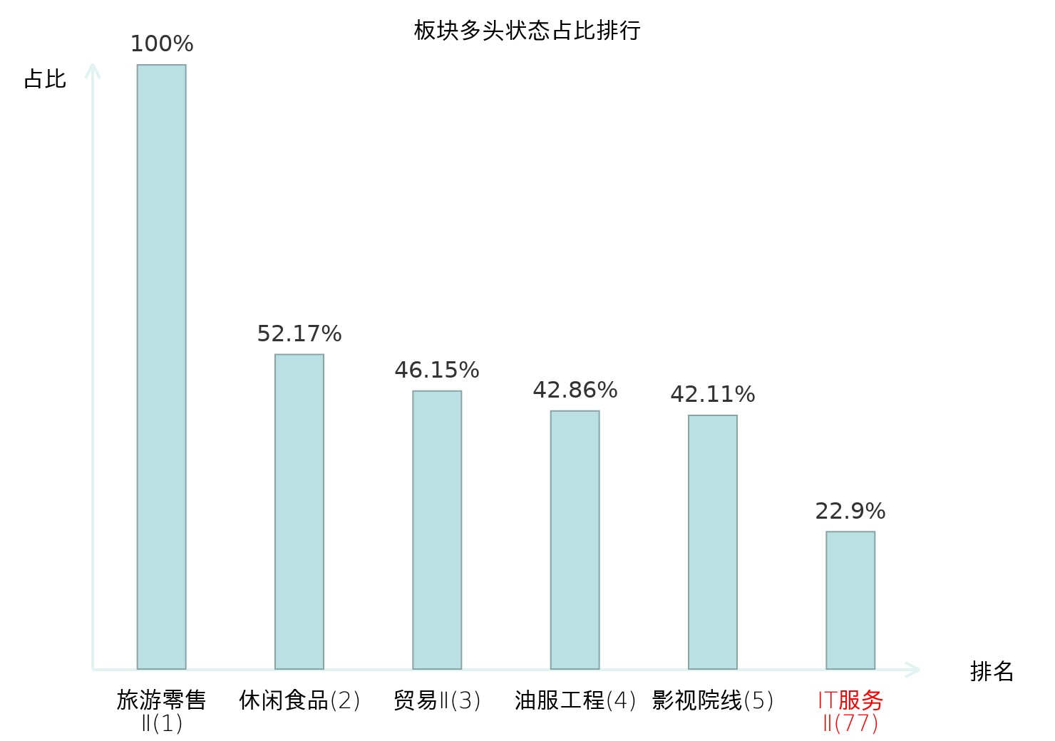 从主力宝信号数据分析,金桥信息所属的IT服务Ⅱ板块中共有30只股票处于主力多头状态,主力多头状态占比在全行业中排名第77位,较昨日下降24位。较高的排名表明主力对于该板块整体看多意愿较强,但此次排名下降可能反映了主力态度的一些微调。全市场所有行业板块中主力多头状态占比排名中,旅游零售Ⅱ板块位居第一;体育Ⅱ板块名次提升最快,较昨日上升99位。这些变化揭示了不同行业间主力资金动向的趋势,为投资者提供了关于市场情绪和潜在投资机会的重要线索。