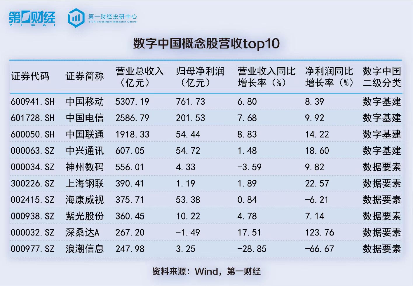 若和申万31个一级行业相比,数字中国概念股的总营收增速、净利增速分别排在第19位和第20位。