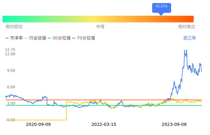 2023年09月08日,金桥信息上涨0.11%收于26.49,今日成交金额6.75亿元。下文将从市盈率PETTM、市净率PB、市现率3个角度去分析公司估值情况。