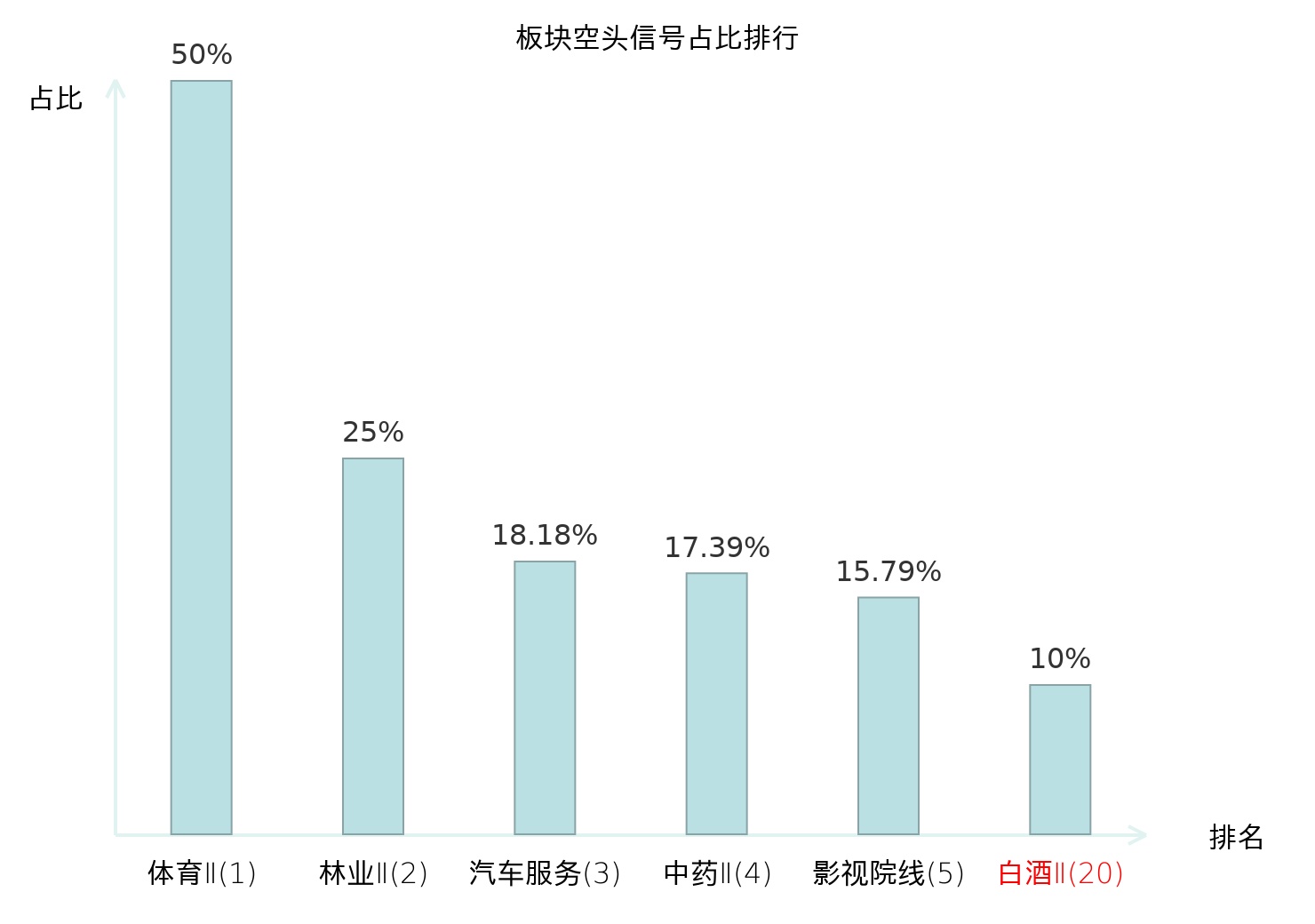 全市场所有行业板块中主力空头信号占比排名中,体育Ⅱ板块位居第一。文娱用品板块名次提升最快,较昨日上升101位。