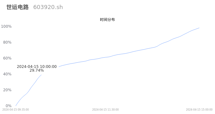 603920世运电路2024年04月15日成交11.23万手,成交金额1.92亿元,相较昨日缩量1.85万手,换手率2.08%,成交清淡。