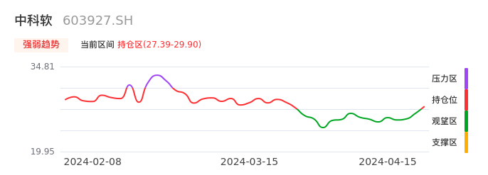 值得注意的是:2024年04月浙商证券的刘雯蜀/郑毅分析师,首次发布关于中科软的研究报告,标题为:中科软(603927):产品化&国际化&“保险+”打造公司盈利能力持续提升。