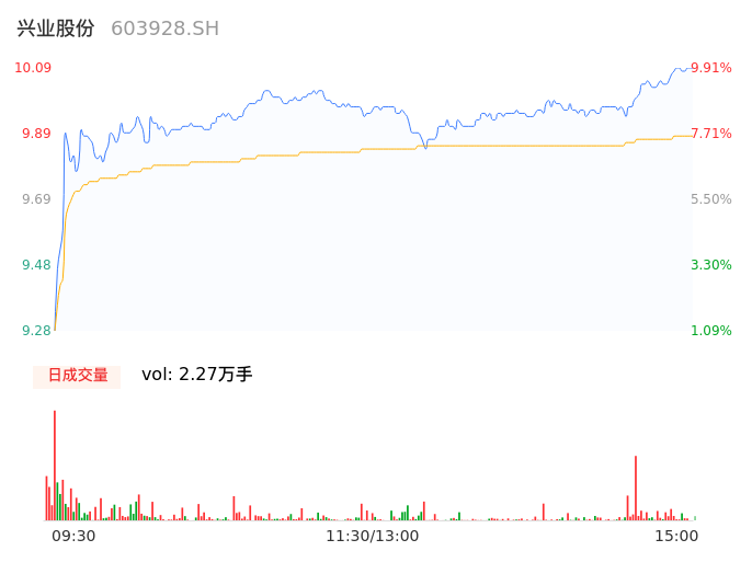 04月17日,兴业股份收报10.06,股价涨幅9.59%,成交金额2244.62万元,换手率1.13%。