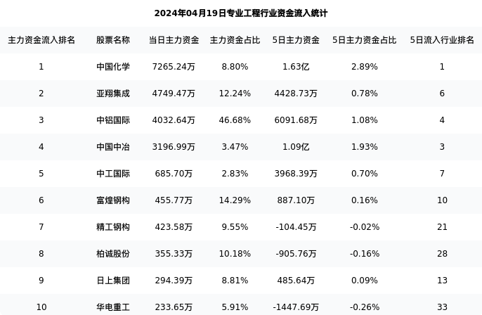 从主力资金流向来看,专业工程行业今日主力资金流入21.17亿元,在所有申万二级行业中排名:33/131。